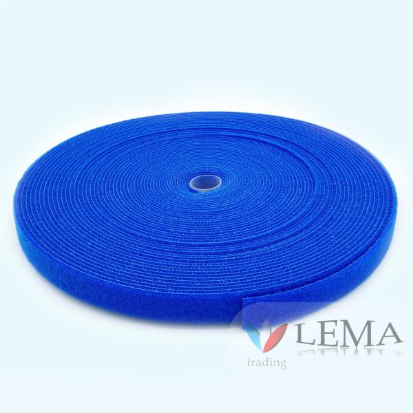 25 mètres de ruban auto-agrippant à coudre 150 mm bleu royal.
