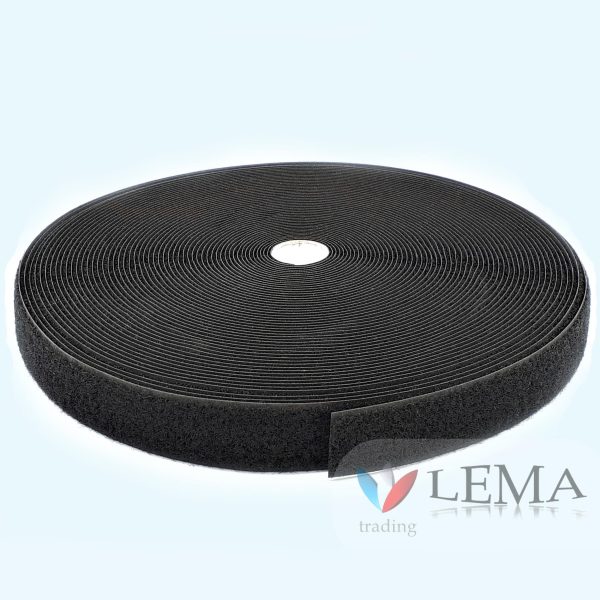 25 mètres de ruban auto-agrippant à coudre 30 mm noir.