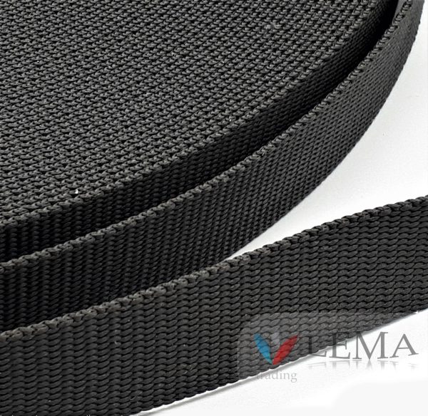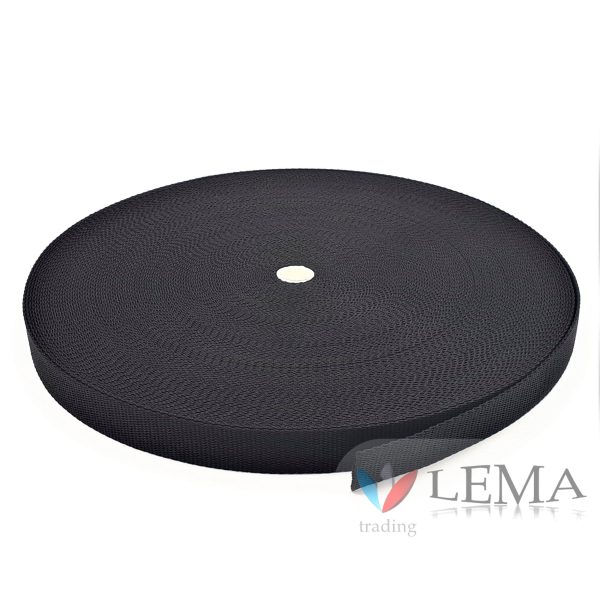 Sangle en polypropylène 80 mm, couleur noire, en rouleaux de 50 ml.